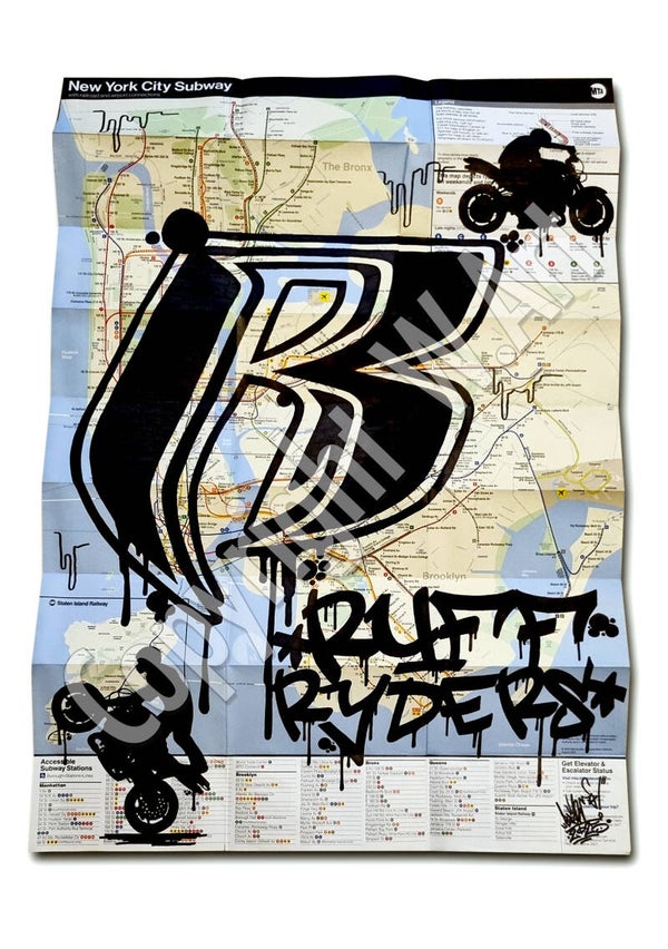 Original New York Subway Map mit "Ruff Ryders" Logo Motiv, handbemalte Rap Map von W.Art